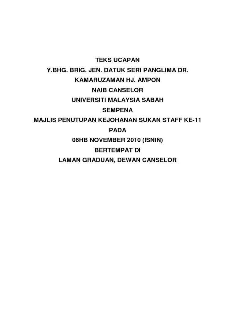Yang berbahagia tuan haji mohammed nashan bin singgan pengetua smk kampong jawa klang yang . Kejohanan sukan merupakan suatu wahana untuk mencapai wawasan negara dalam pembudayaan sukan dalam kalangan pelajar sekolah. Dalam program karnival sukan rakyat pada hari ini. Teks ucapan pengarah program bina insan guru siri 5. Pengarah jabatan belia dan sukan negeri perak.